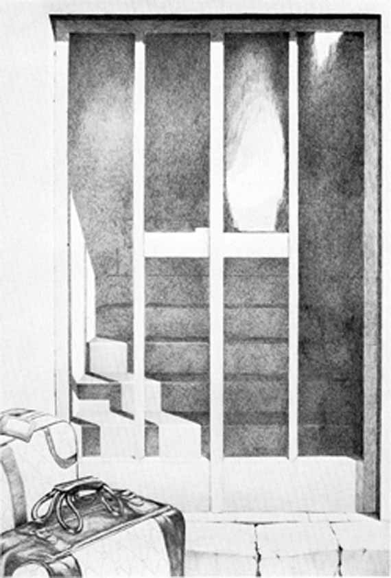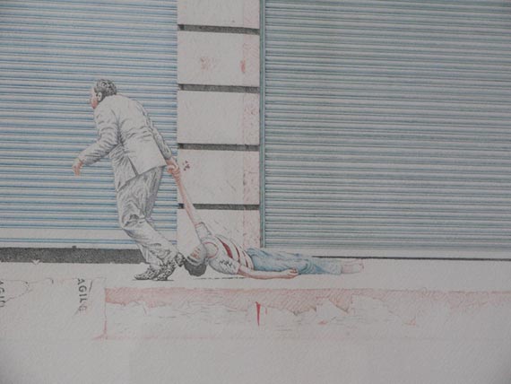 Ludwigs Lieferanteneingang, 1975, Buntstift auf Papier, 185 x 122 cm, Privatbesitz, Orig. in Farbe
