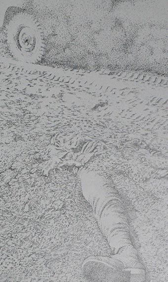 Zwischen Rad und Bein, 1974, Feder und Tusche, 55 x 40 cm, Ausschnitt